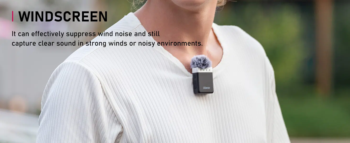 Windscreen Included: Effectively suppresses wind noise for clear audio in strong winds or noisy environments.