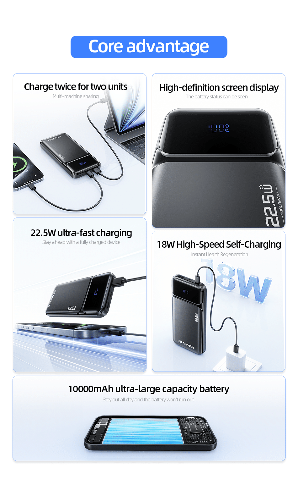 Awei PA‑90 22.5W Fast Power Bank (10000mAh) ×1