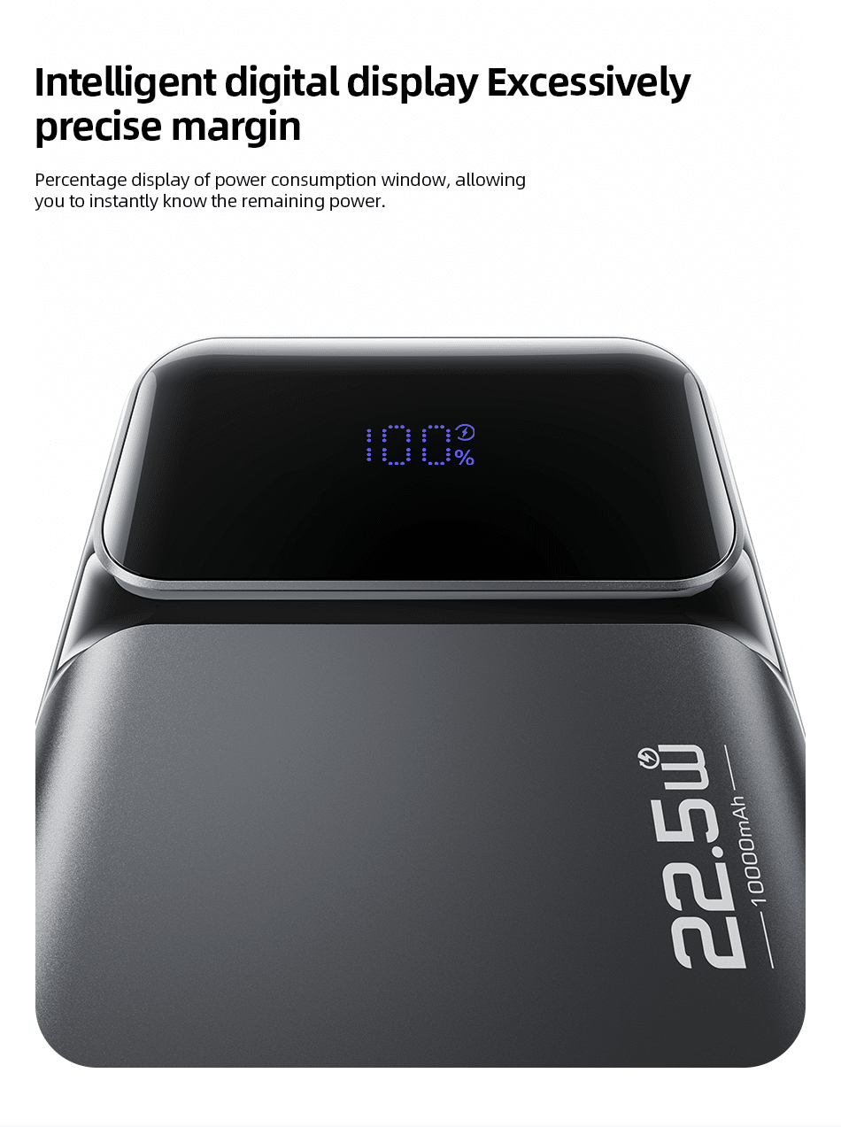 Intelligent Digital LED Display: Shows the remaining battery percentage clearly, allowing users to monitor power levels and recharge the power bank at the right time. No more guessing – know exactly how much charge is left.