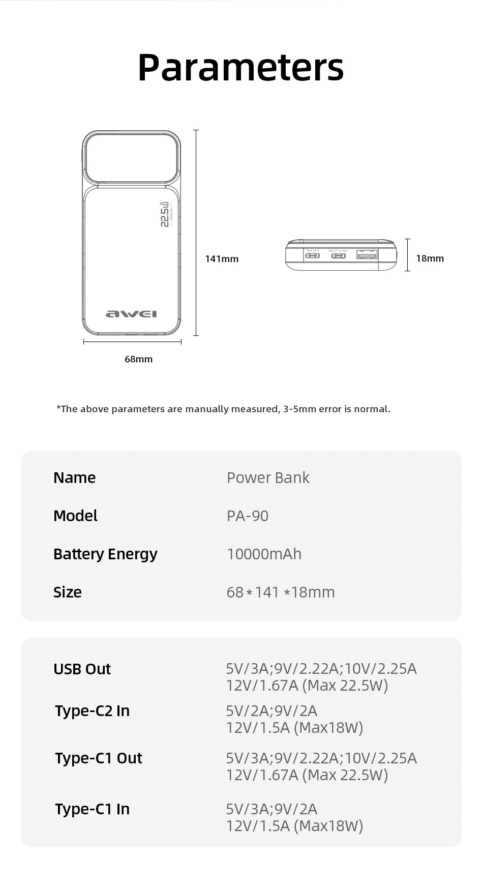 | Model | PA‑90 22.5W Fast Power Bank |