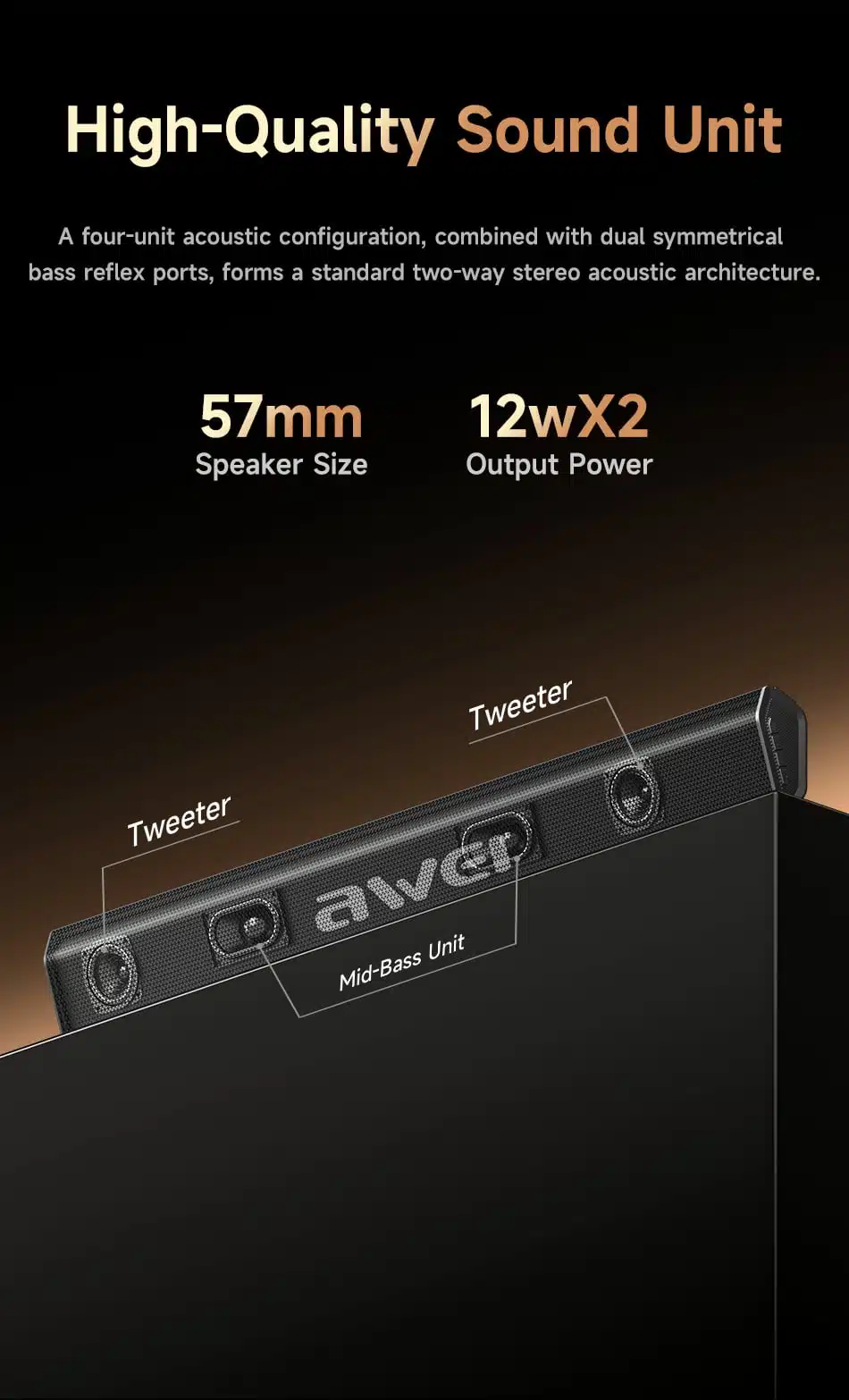 Awei KA50 Soundbar: Compact Design, 24W Immersive Audio Power