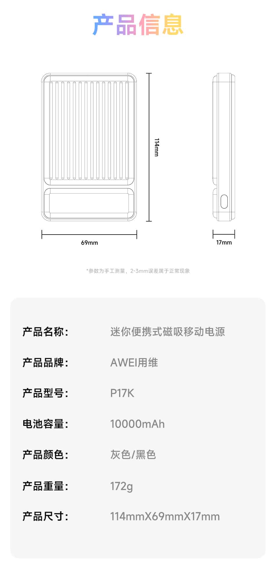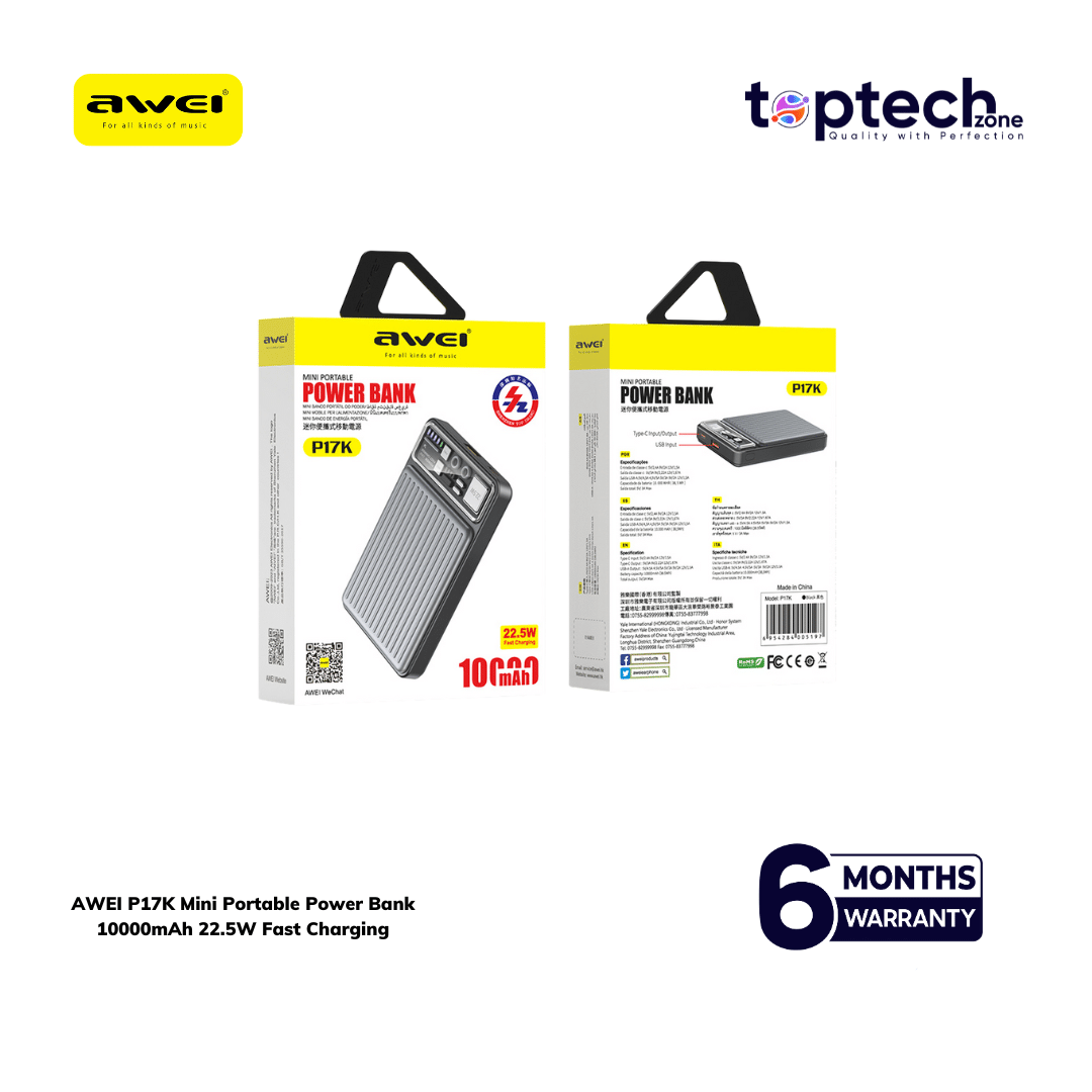 AWEI P17K Mini Portable Power Bank: 15W Wireless & 22.5W Fast Charging with 10000mAh
