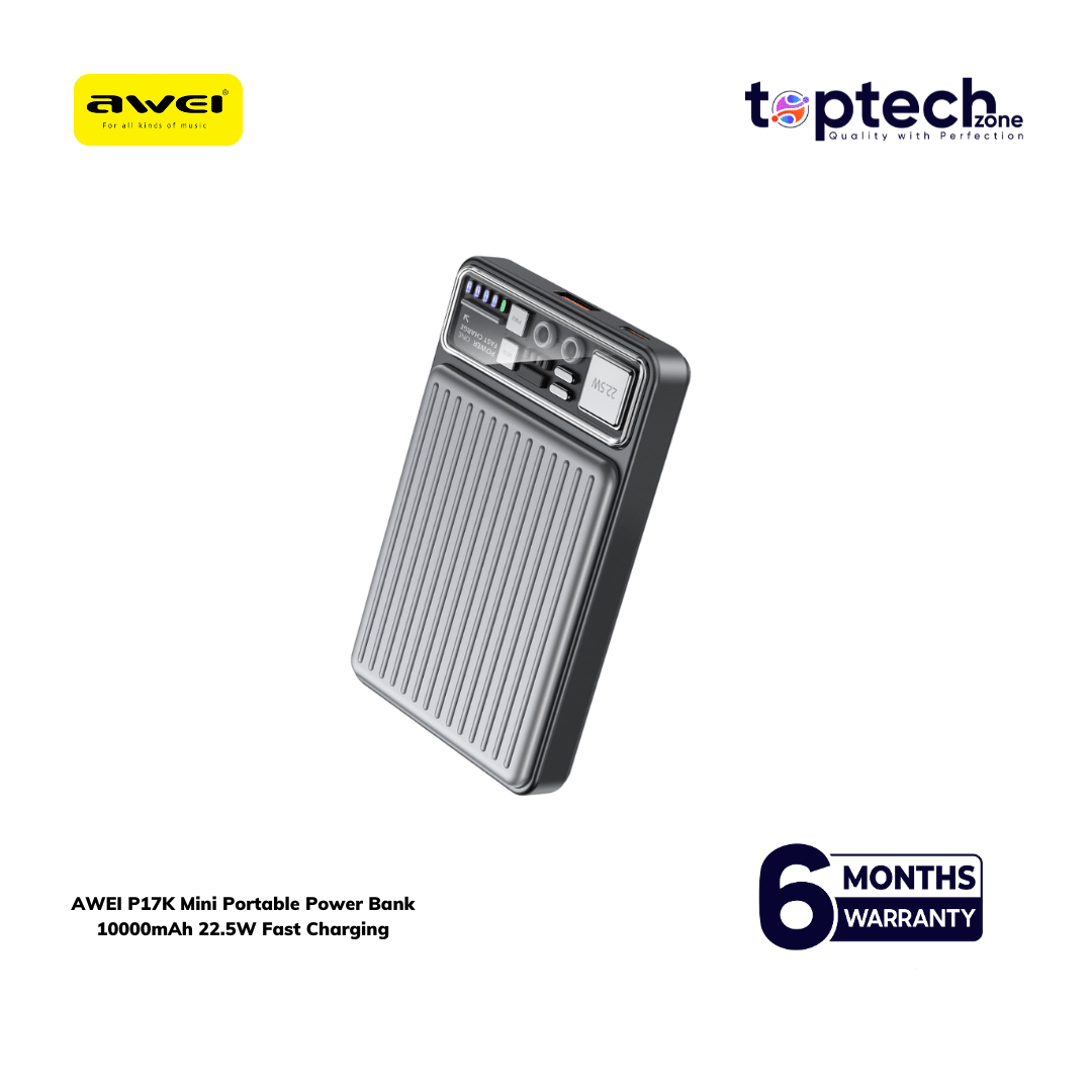 Power up in seconds. The AWEI P17K Mini Portable Power Bank is your ultimate compact charging solution, combining high-speed 15W magnetic wireless charging with powerful 22.5W wired output. With a substantial 10000mAh battery housed in a sleek, travel-friendly design, it’s engineered to keep all your devices charged on the go. Every product from Top Tech Zone is 100% authentic and comes with an official warranty, ensuring you receive genuine quality and support.
