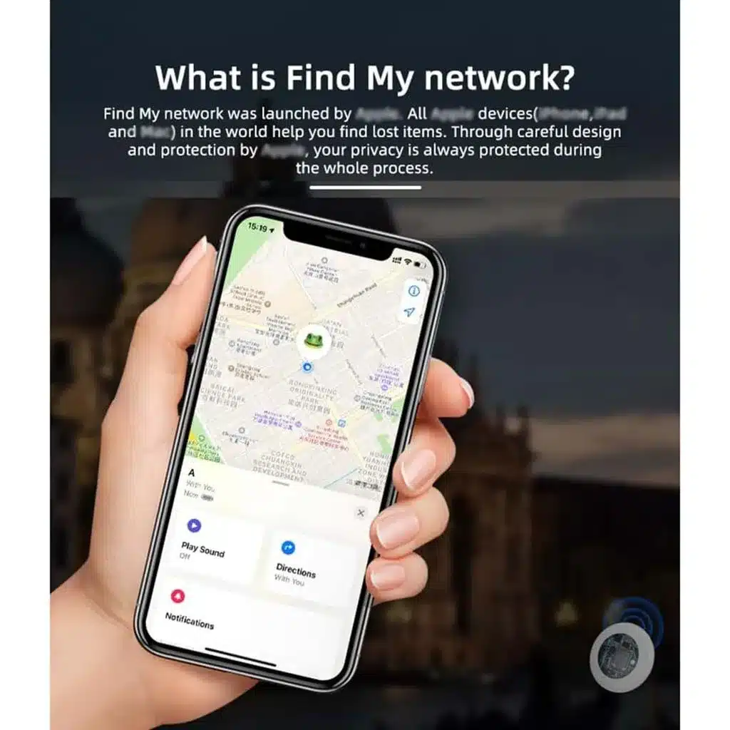 • One-Click Sound Play: Press the “Play Sound” button in the Find My app to make the tag emit a loud, clear ring from its built-in buzzer—perfect for finding items under couch cushions or in bags.