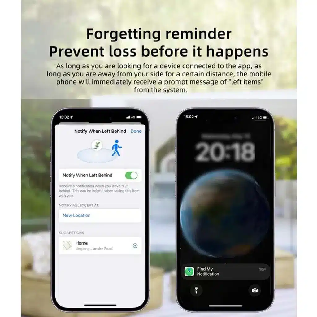 • Forgetting Reminder: Receive an immediate alert on your iPhone if you walk away and leave a tagged item behind. Customize safe locations (like Home or Office) where alerts won’t trigger.