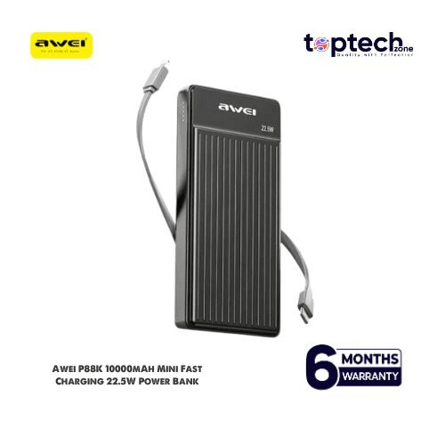 Awei P88K 10000mAh Mini Fast Charging 22.5W Built-In Cable Power Bank
