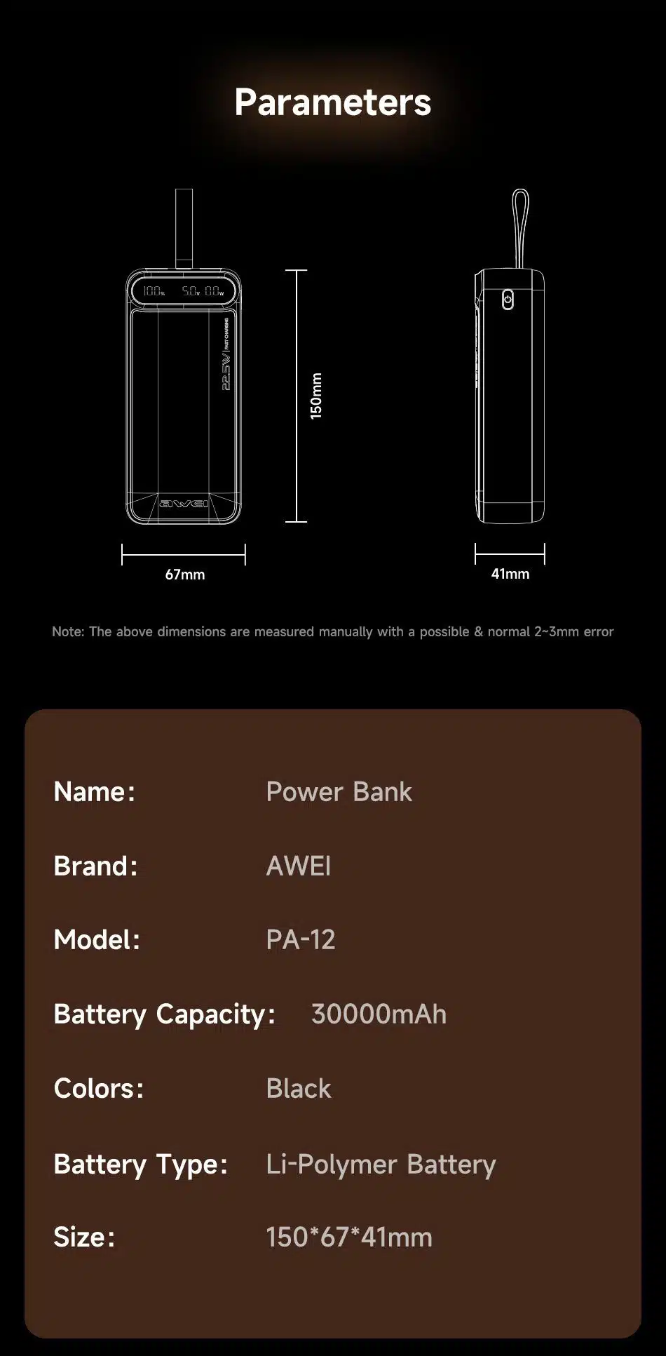 AWEI PA-12 30000mAh Fast Charging Power Bank