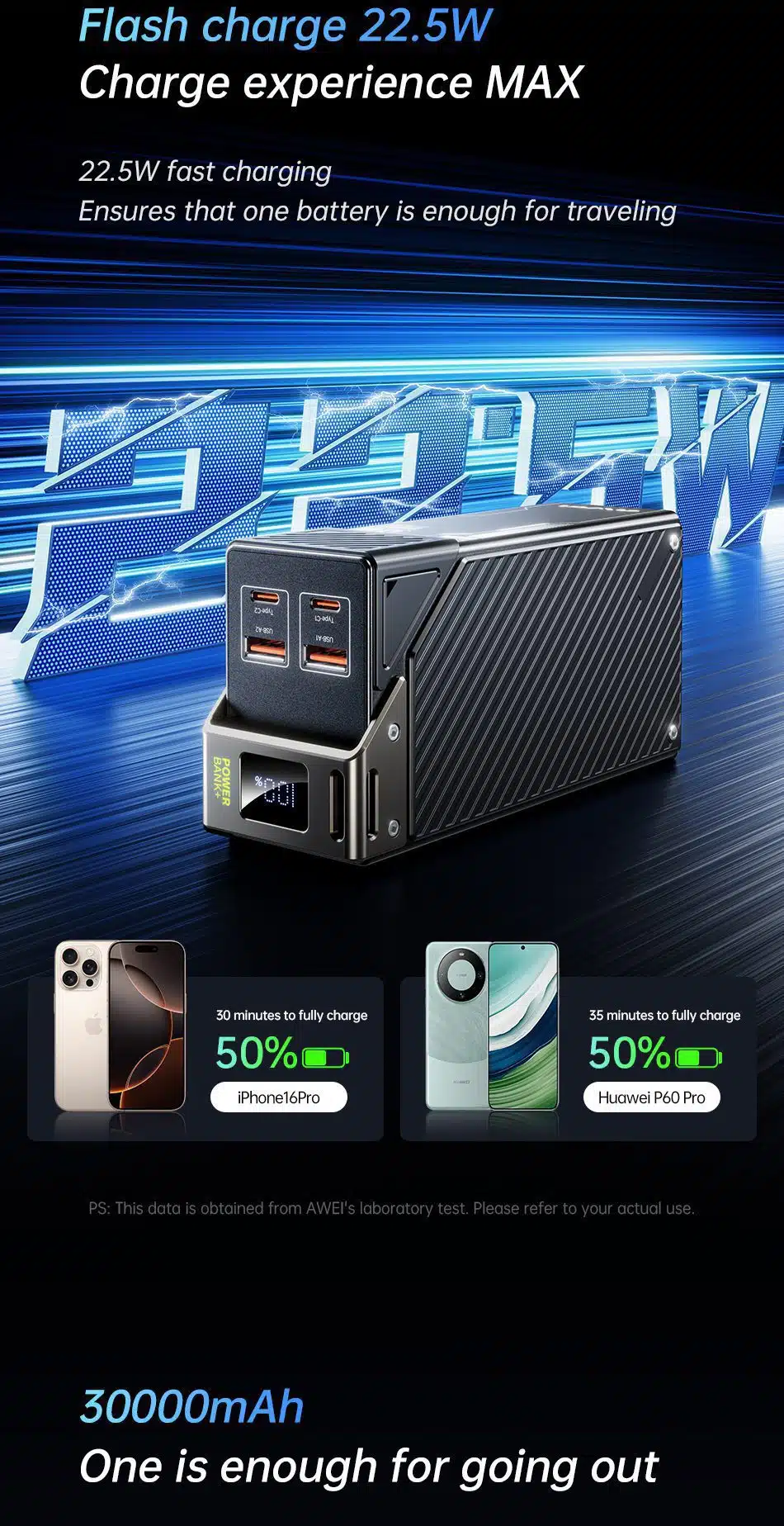 22.5W Fast Charging – Equipped with advanced fast-charging technology to quickly charge your devices and reduce waiting time.