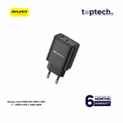 Meet the charger that combines cutting-edge technology with everyday convenience. The Awei PD81T-EU is built with advanced GaN Technology, making it significantly smaller and more efficient than traditional chargers. With a total output of 22.5W and two versatile ports, it’s the perfect travel companion for fast-charging your smartphone, tablet, and other essential devices.