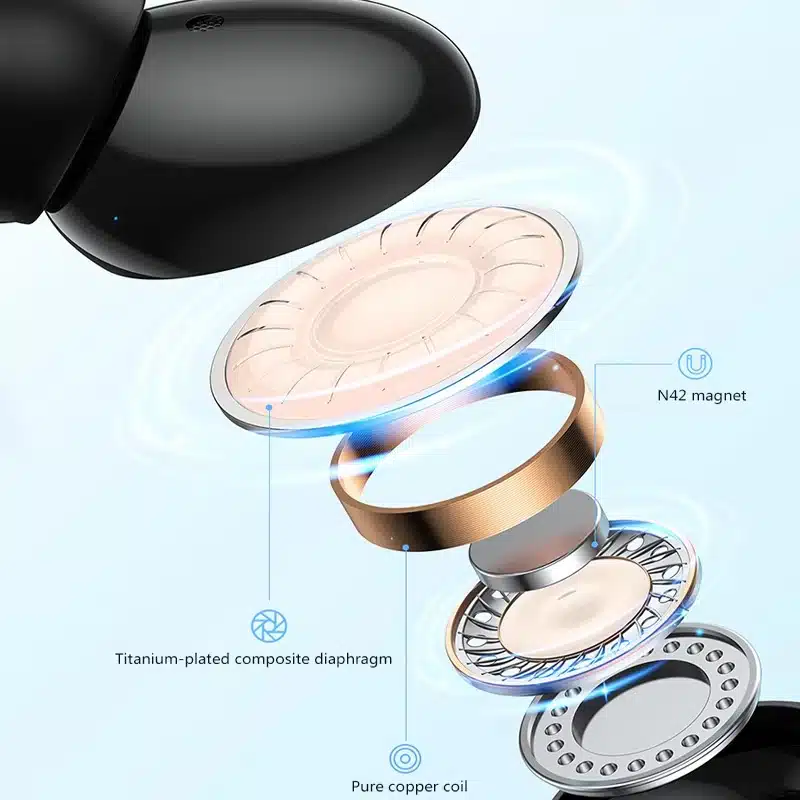 - Battery capacity of charging case: 300mAh (with protective plate) Diameter of drive units: 13mm
