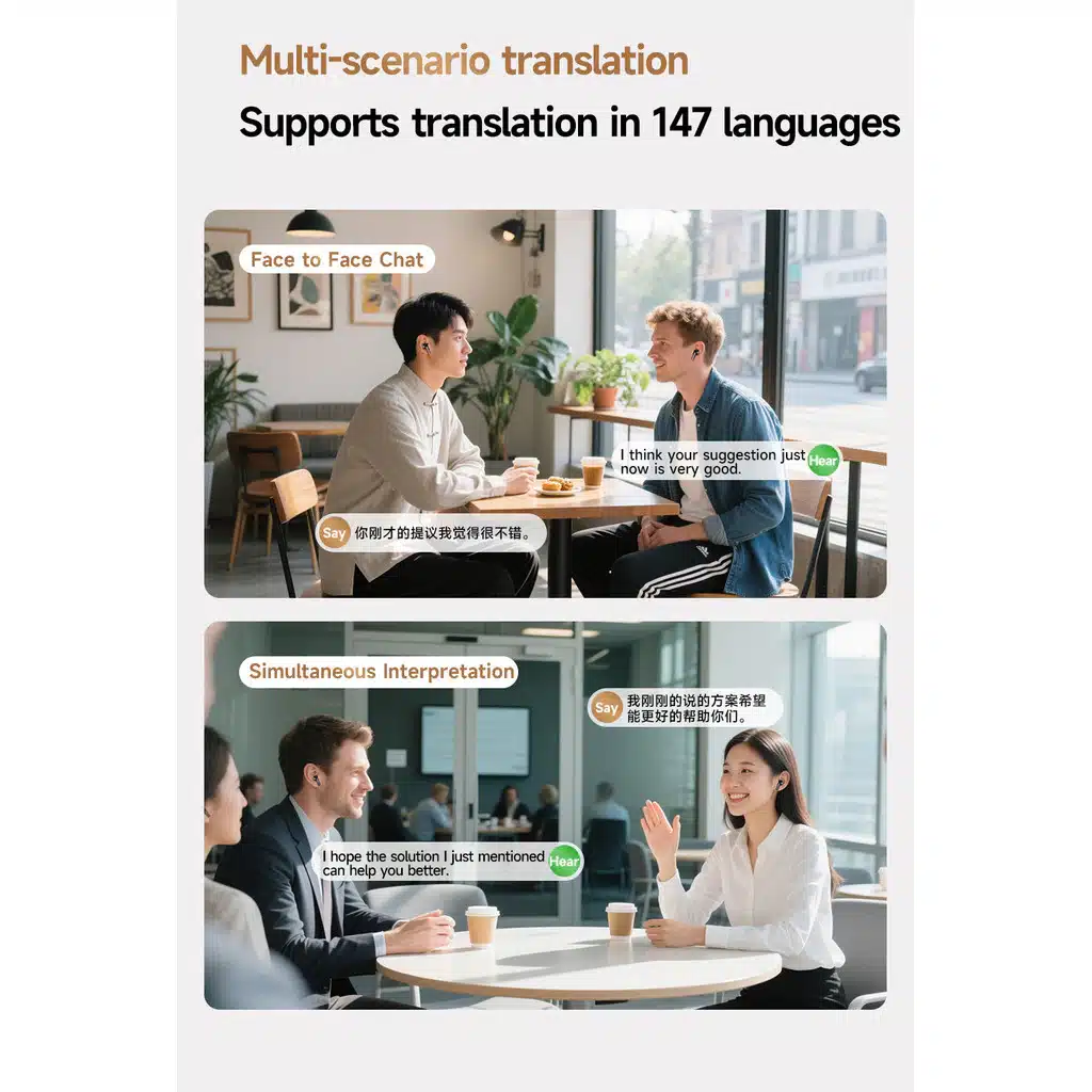 Travelers & Professionals: Break language barriers in real-time during travel, meetings, and conferences.