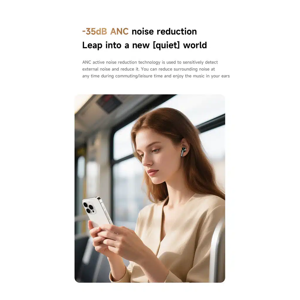 Professional-Grade ANC: Actively detects and cancels out ambient noise up to 35dB—perfect for commuting, travel, or focused work.
