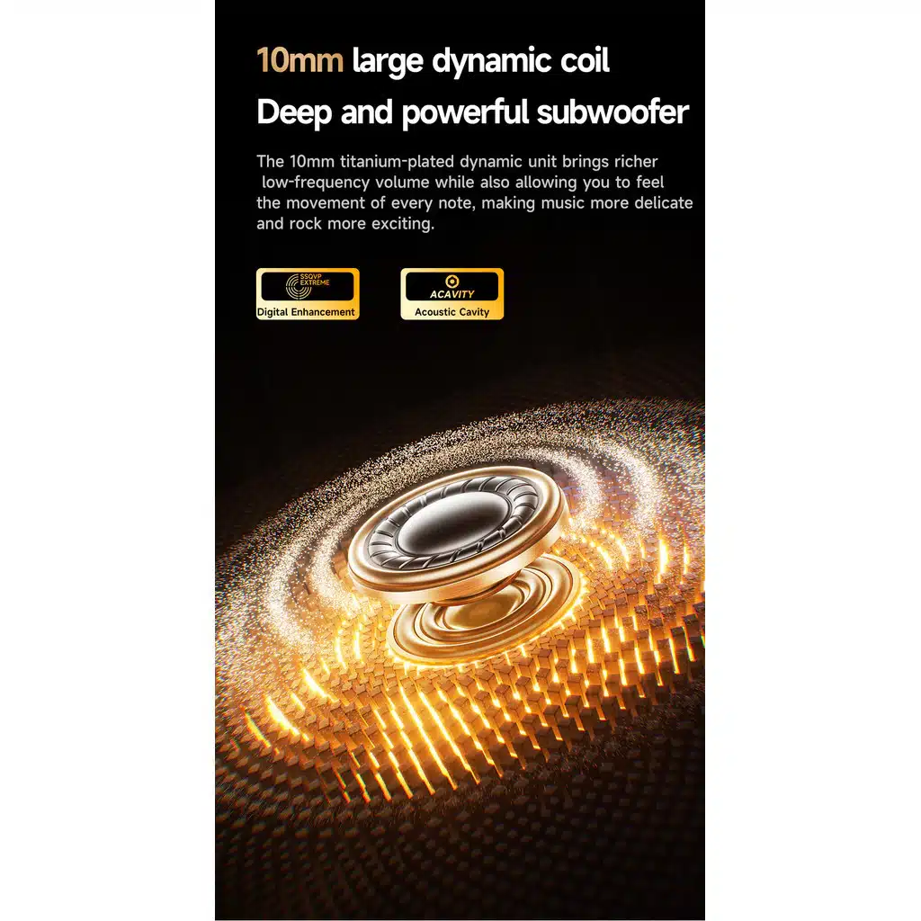 Deep, Powerful Bass: 10mm titanium-plated dynamic drivers deliver rich, punchy low frequencies.
