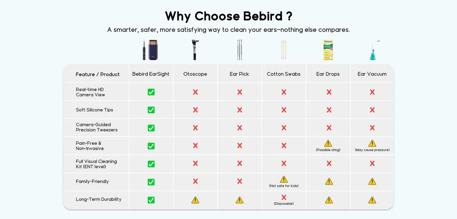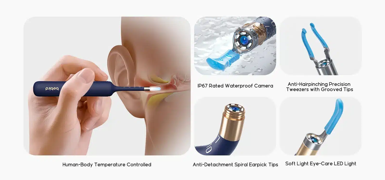 The Bebird EarSight Plus 135R is a next-generation ear care solution that combines HD visual technology, safety-focused design, and wireless connectivity. With a 10MP CMOS camera and ultra-thin 3.5 mm silicone-coated lens, it lets you see and clean your ear canal with precision while ensuring comfort and safety.
