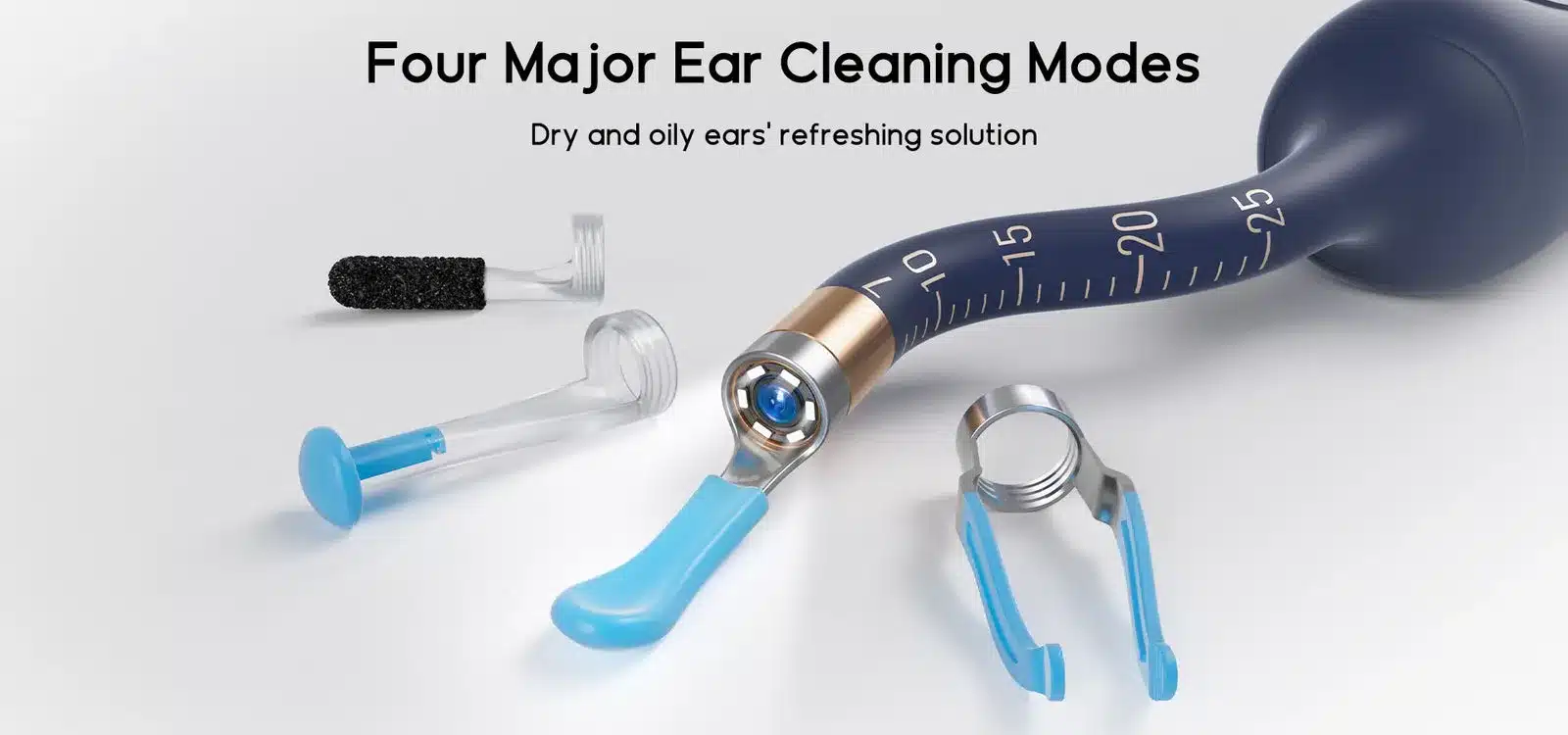 The bendable silicone-coated tube lens adapts to different ear canal shapes. Built-in safety stoppers and depth scales prevent over-insertion and protect sensitive areas.