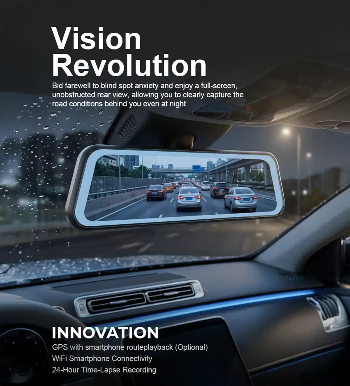 Engineered for Innovation & Reliability: From 4K HDR front recording to optional GPS and 24‑hour time‑lapse, every feature is designed to innovate your vision and drive confidence.