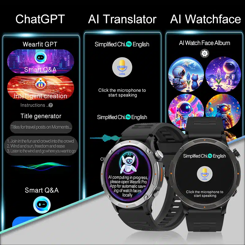 Core Technologies Built-in GPS, Wearfit GPT (ChatGPT), AI Translator, ABC Sensors