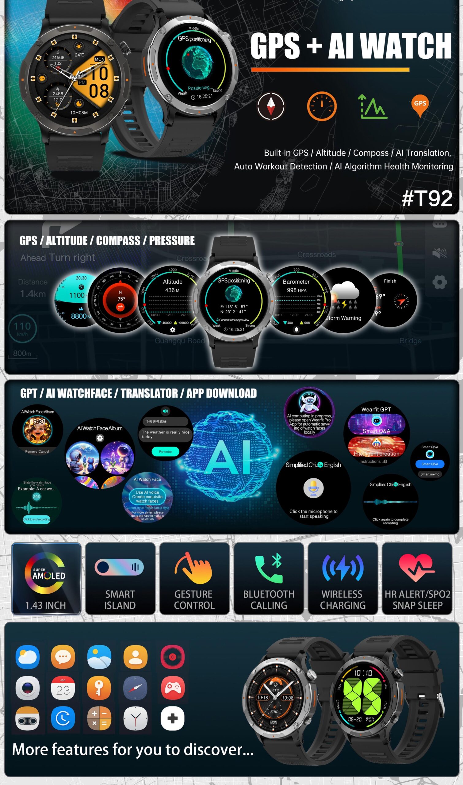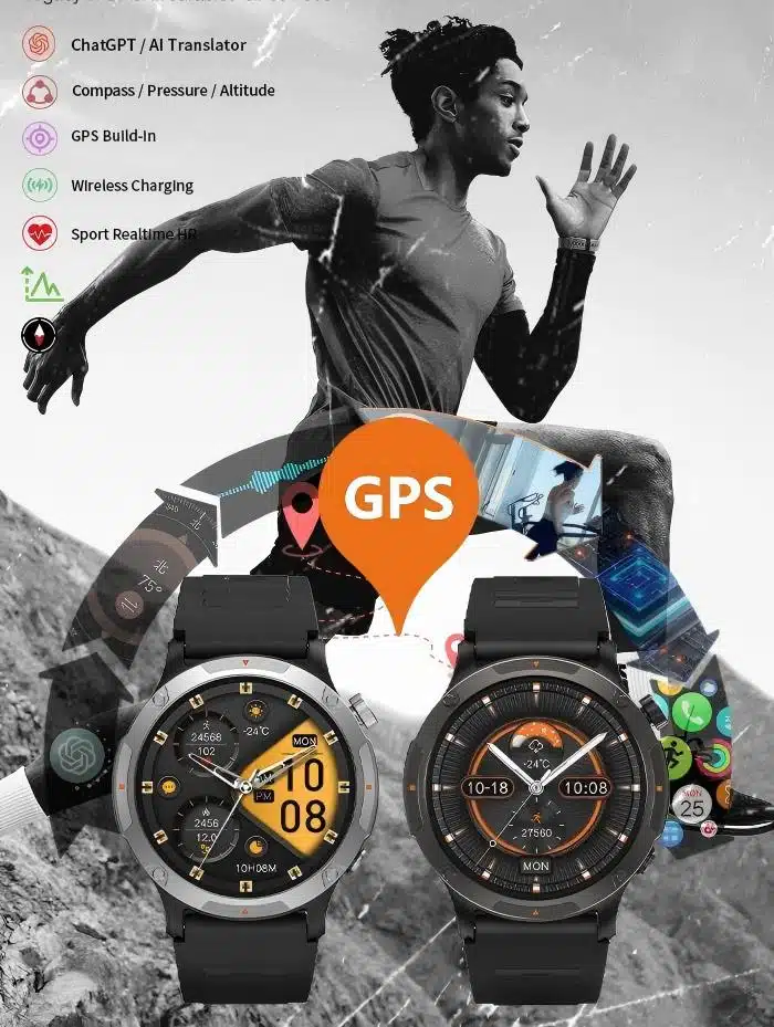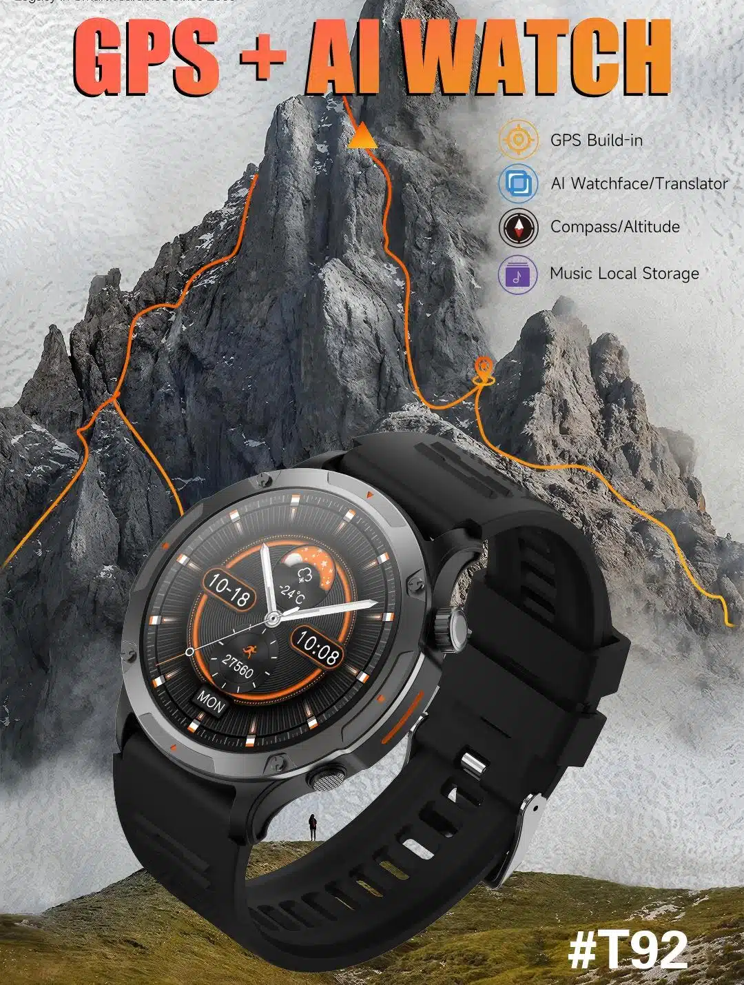 Conquer any terrain with intelligence on your wrist. The KFI GTR Rugged Smart Watch is engineered for the adventurous spirit, merging robust, weather-ready construction with groundbreaking technology. It features a precise built-in GPS for independent navigation, a suite of environmental sensors (altimeter, barometer, compass), and integrated AI capabilities like ChatGPT and a real-time translator. Whether you’re scaling mountains, exploring trails, or navigating city streets, the GTR is your all-in-one guide, fitness tracker, and smart companion.