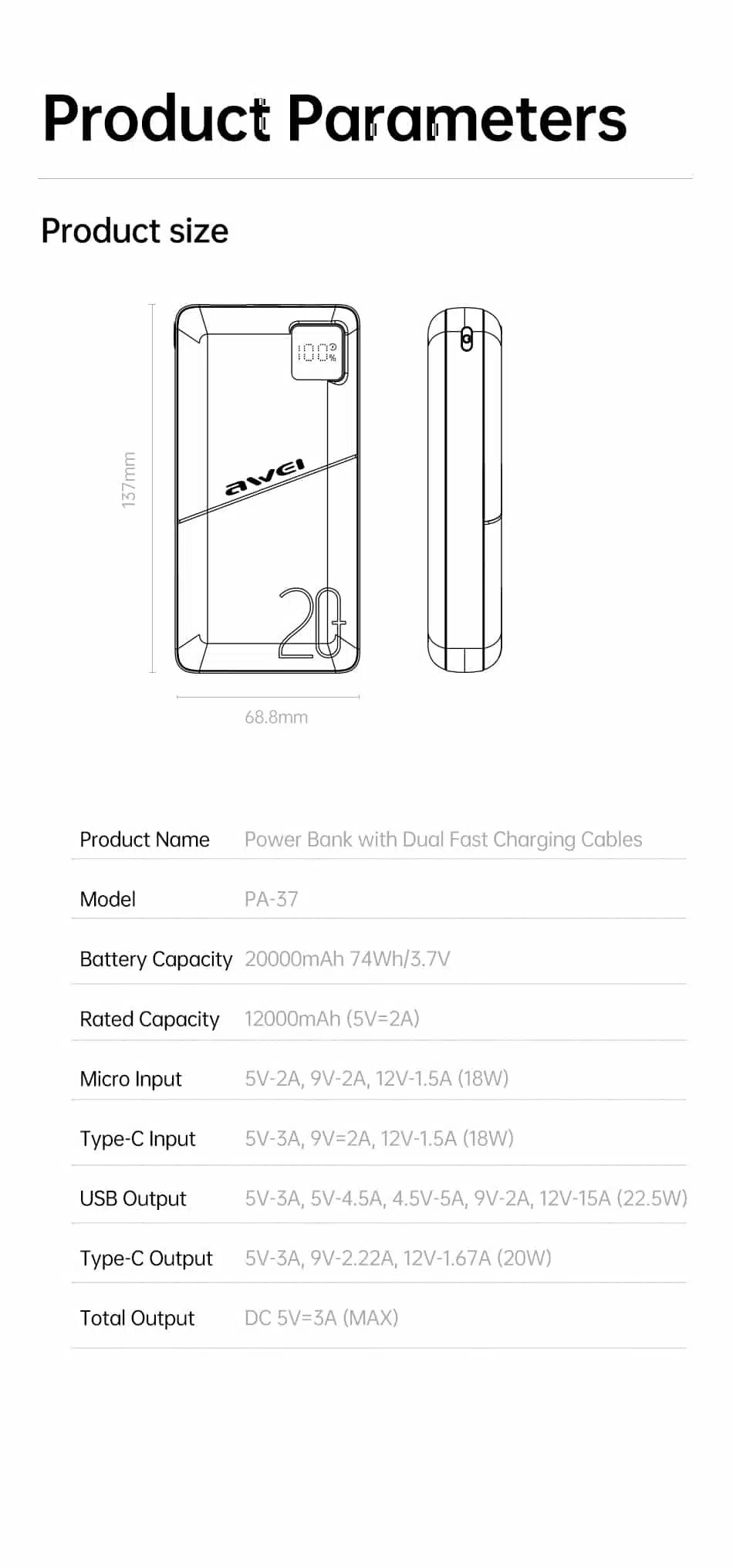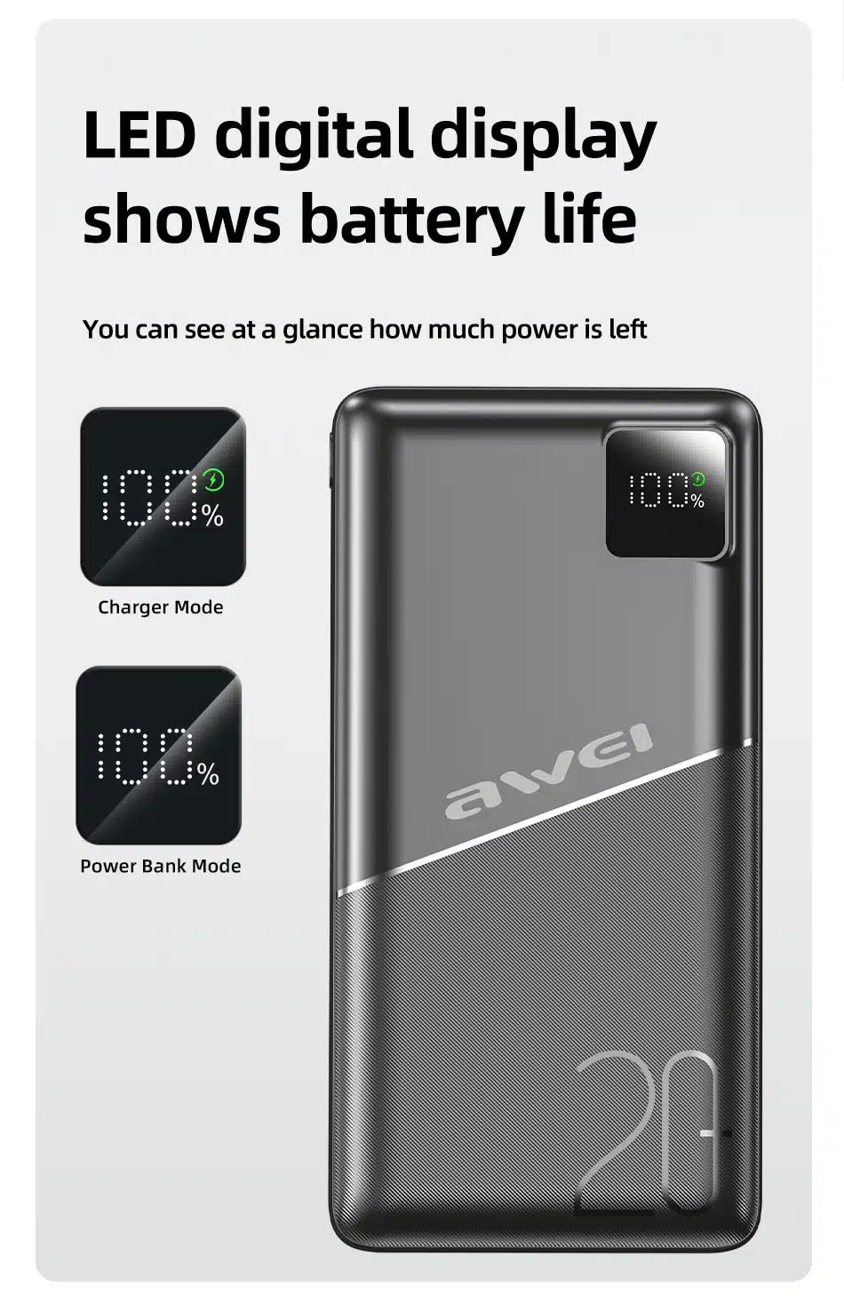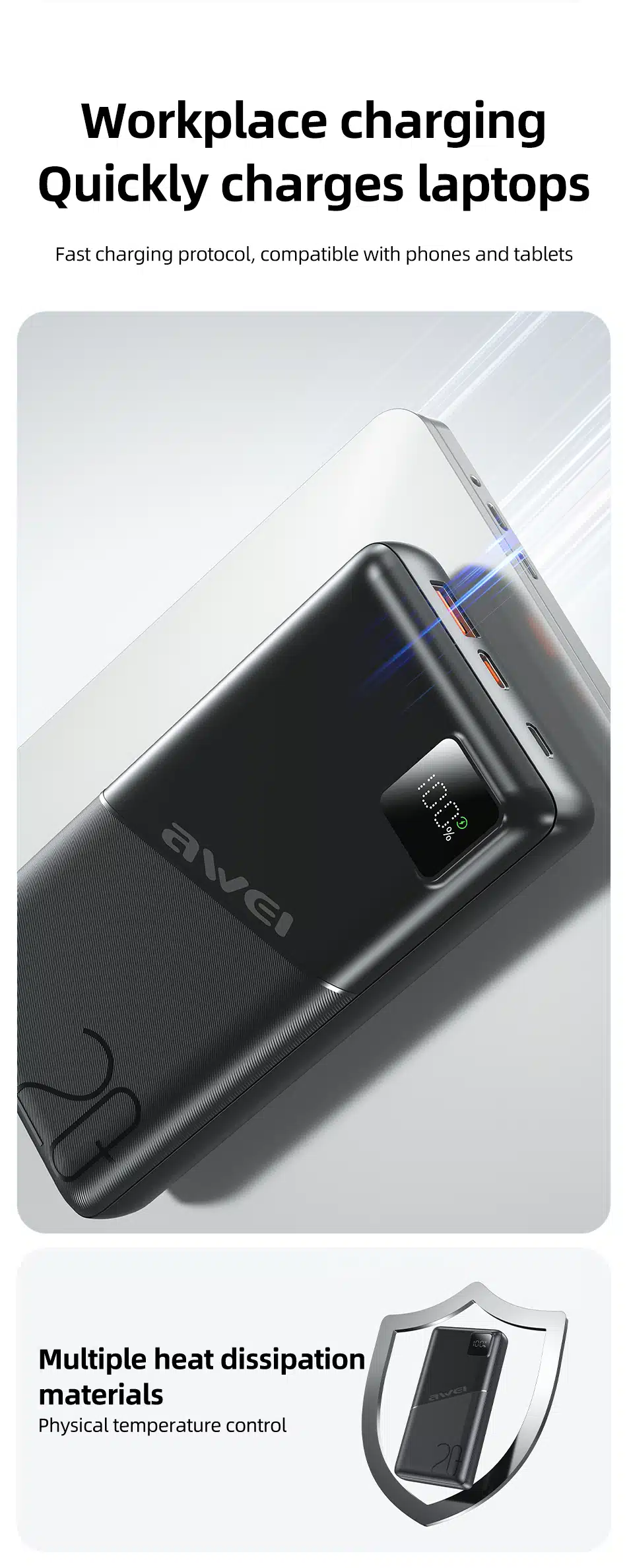 Stay powered up wherever life takes you with the PA-37 20000mAh Power Bank. Designed for modern mobile lifestyles, this powerful portable charger delivers 22.5W Max fast charging to keep your smartphones, tablets, and even laptops running all day long. With multiple ports and intelligent compatibility, it’s the ultimate power solution for work, travel, and everyday use.