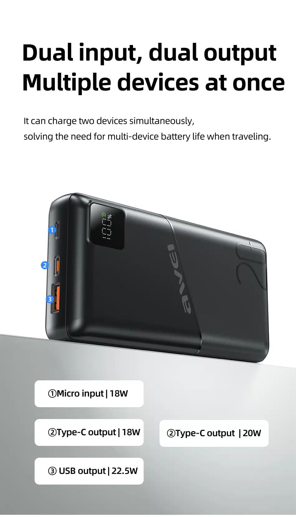 | Output Ports | USB (22.5W Max), Type-C (20W/22.5W Max) |
