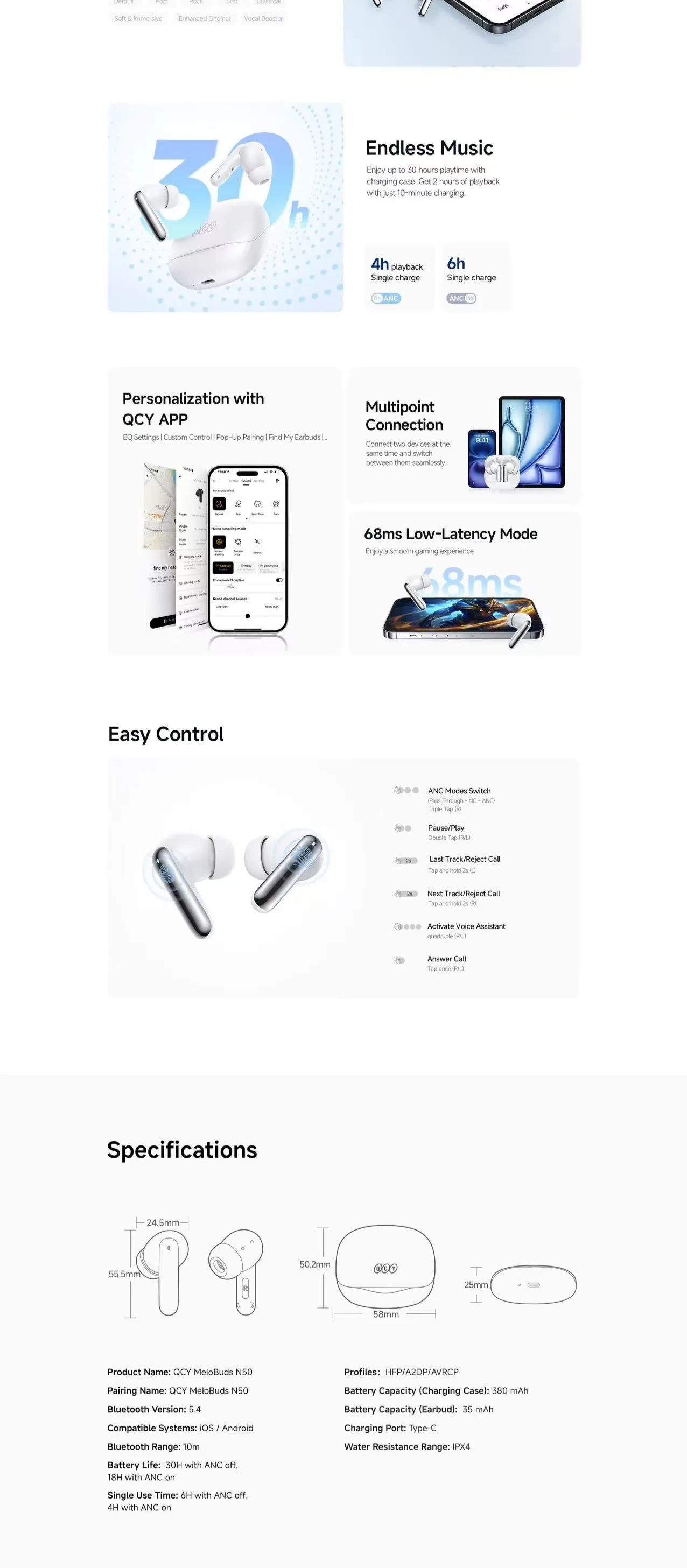 Qcy MeloBuds 2 (N50) 45dB Adaptive Noise Canceling Earbuds