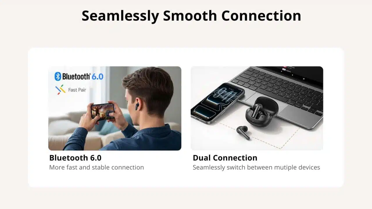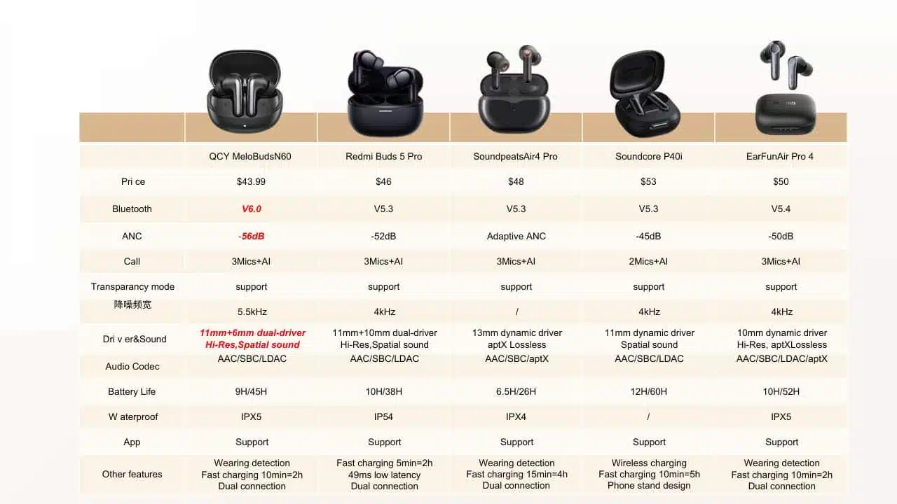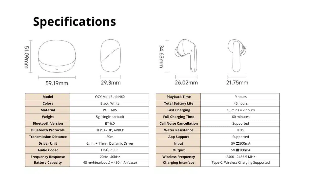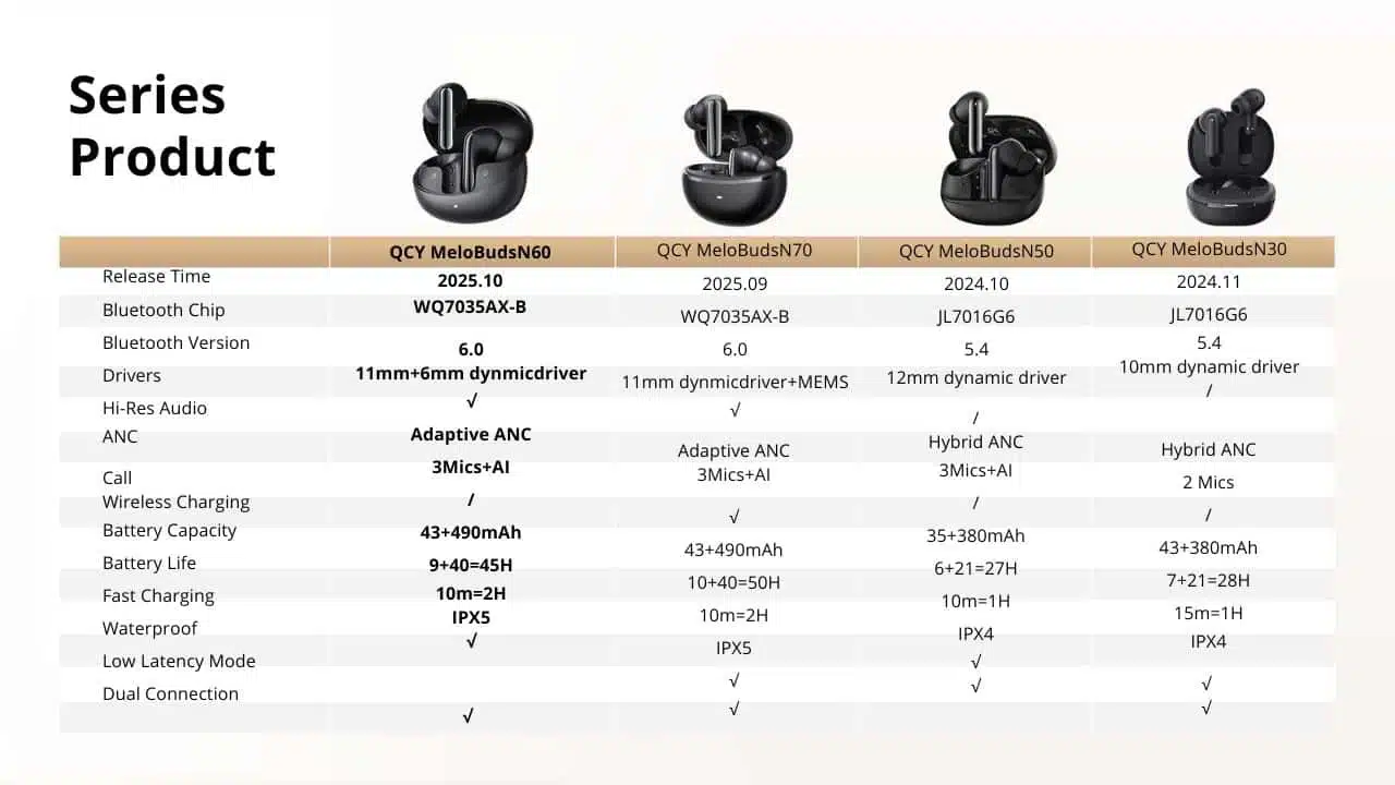 QCY MeloBuds N60 Adaptive Noise Canceling Wireless Earbuds
