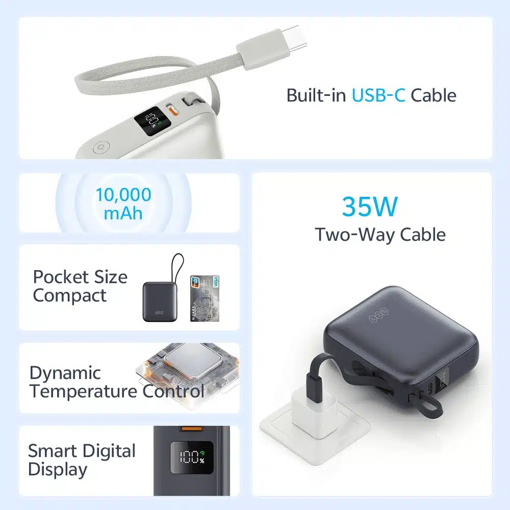 QCY PB10C 10000mAh 35W PD Fast Charging Mini Power bank