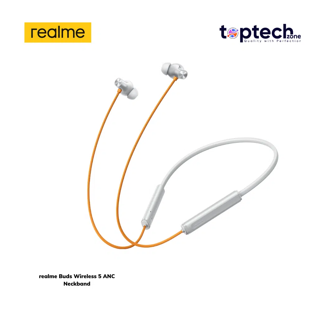 realme Buds Wireless 5 ANC Neckband – Best ANC, Beast Battery Life. The Realme Buds Wireless 5 ANC features a 13.6mm dynamic bass driver and offers up to 50dB of active noise cancellation (ANC). It includes three adaptive noise reduction levels and supports environmental noise cancellation (ENC) to improve call clarity. Additionally, the headset is compatible with the Realme Link app, enabling users to customize EQ settings and adjust noise cancellation modes.