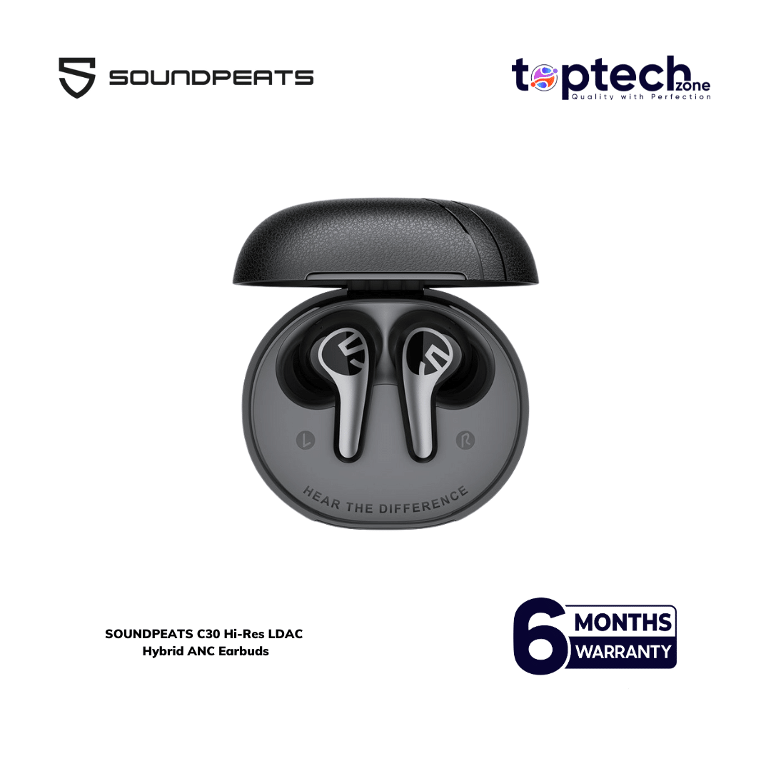 Experience next-level premium sound with the SOUNDPEATS C30, engineered with a powerful 10mm dynamic driver + balanced armature for studio-grade clarity. With Hi-Res Audio certification, LDAC codec, and 42dB Hybrid ANC, these earbuds deliver immersive sound, rich bass, and noise-free listening wherever you go.