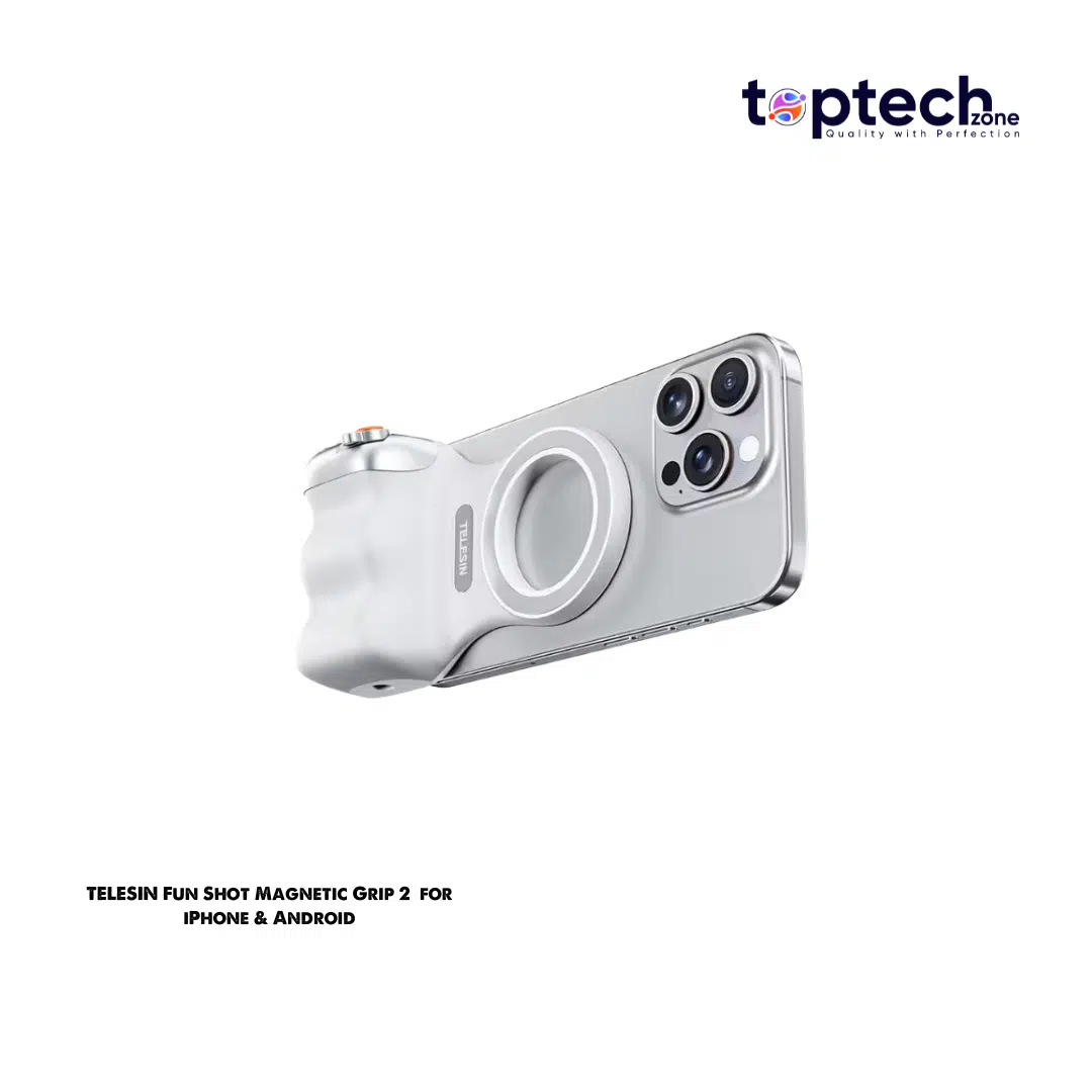 Capture like a pro with the TELESIN Fun Shot Magnetic Grip 2 DSLR Style Shutter Grip — now available at Top Tech Zone Bangladesh. This premium magnetic phone grip transforms your smartphone into a DSLR-style camera, offering comfort, stability, and precision for both iPhone and Android users.