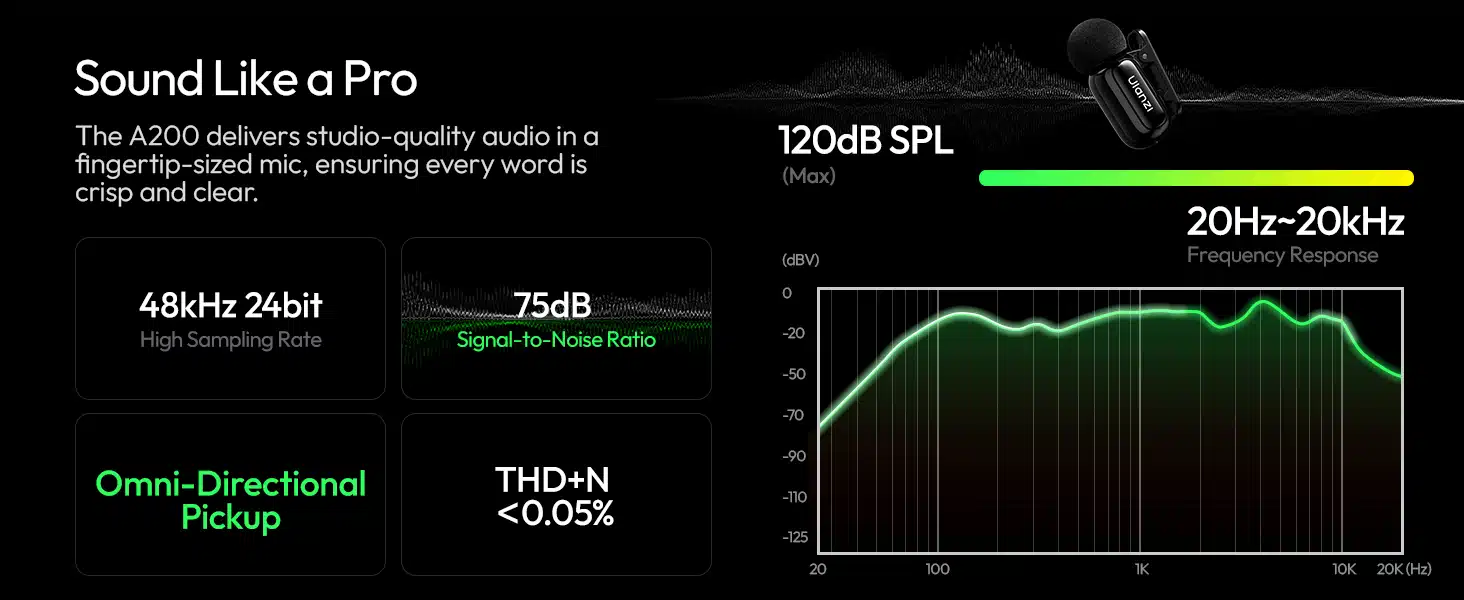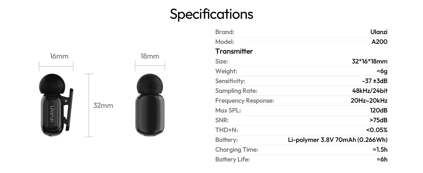 ULANZI A200 Mini Mic Wireless Lavalier Microphone