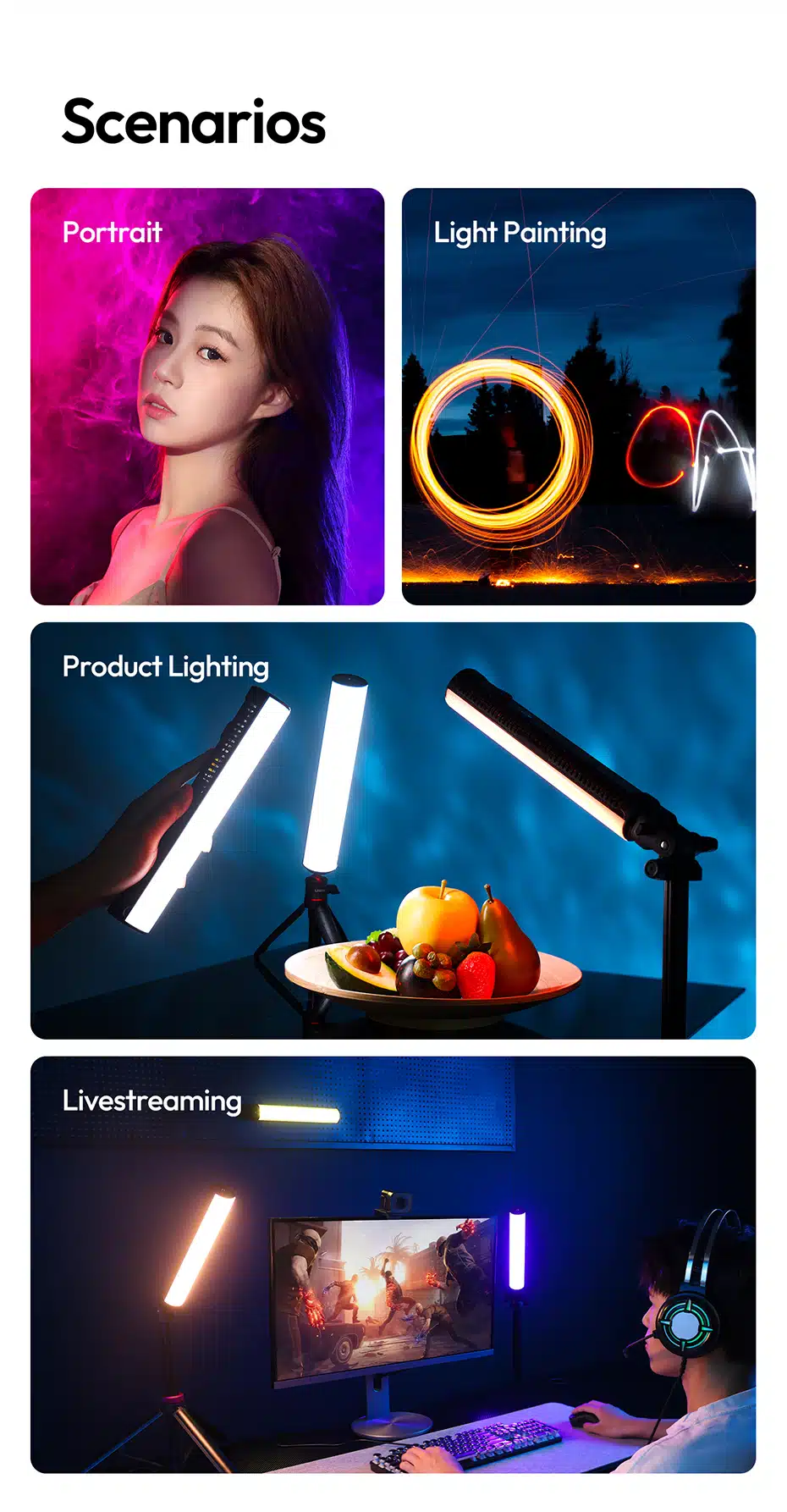 Perfect for light painting, product photography (match brand colors), background accents, and party atmosphere lighting.