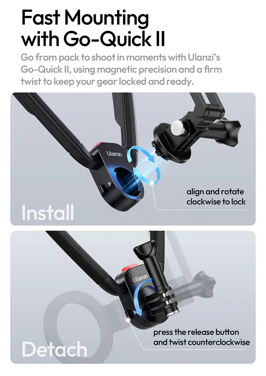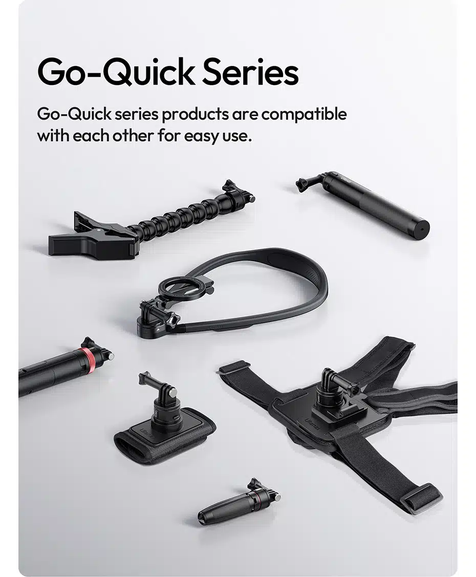 Go‑Quick Series Compatibility: Fully compatible with other Go‑Quick series products (e.g., mini extendable tripod, magnetic chest strap) for easy expansion of your shooting setup.