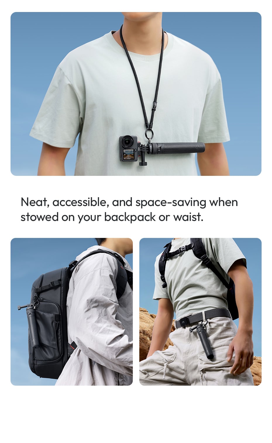 Whether you’re vlogging, recording store tours, or capturing outdoor adventures, you’ll always get the perfect framing.