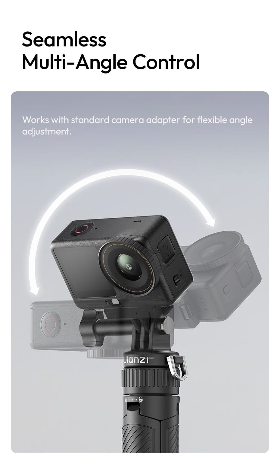 Seamless Multi‑Angle Control: Works with a standard camera adapter (included on the mount) for flexible angle adjustment – tilt, rotate, and frame your shot exactly how you want it.