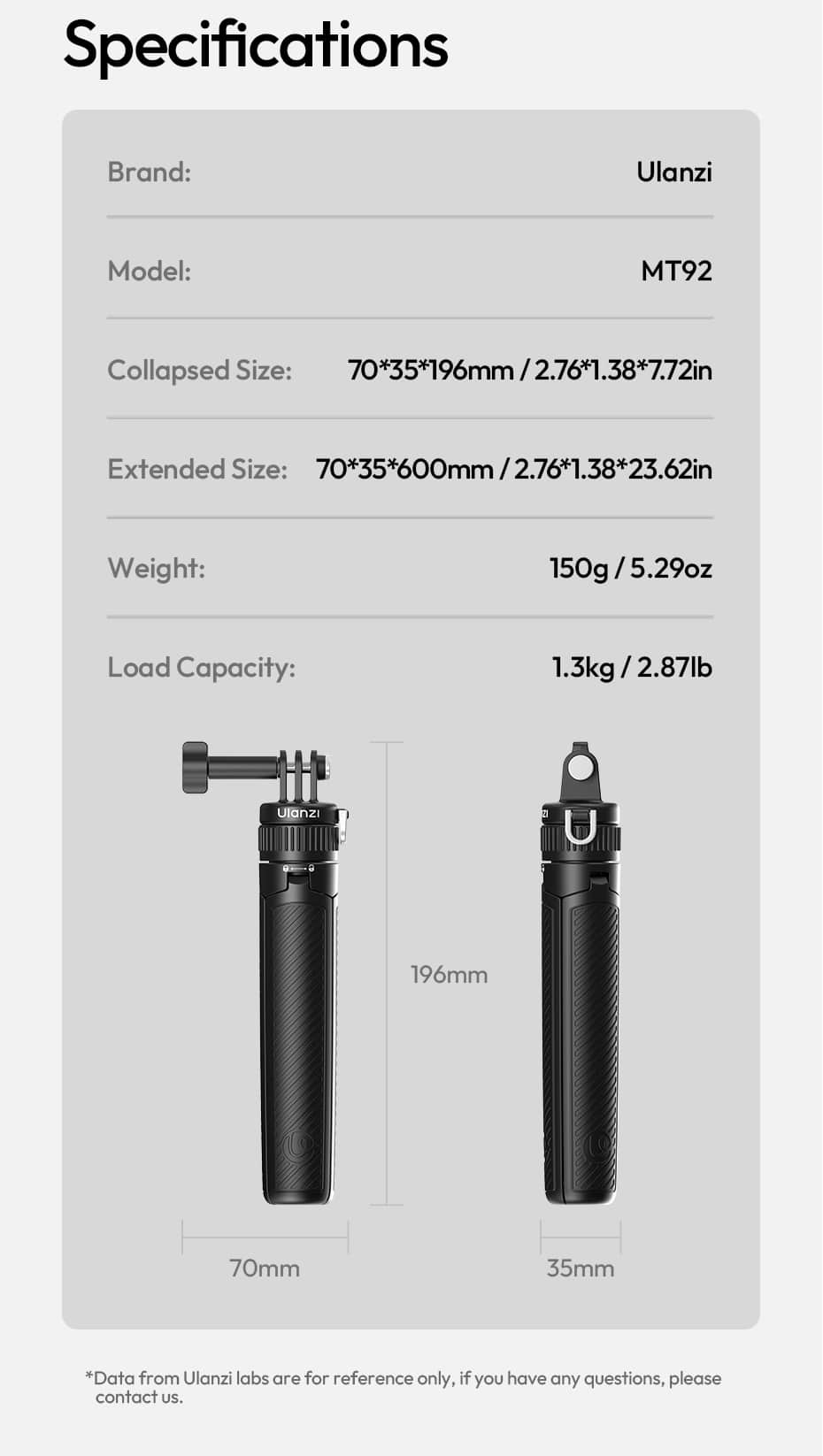 Weighing only 150g (5.3 ounces) and collapsing to a compact 196mm (7.7 inches), the MT92 is designed to go everywhere you do. Slip it into a pocket, backpack, or camera bag. Clip it to your gear using the integrated carry loop and included lanyard. Whether you’re hiking, biking, traveling, or just exploring your city, the MT92 is always ready to capture the action.