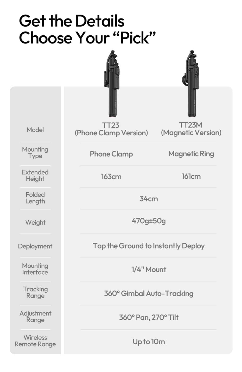 | Model | TT23 (Phone Clamp Version) | TT23M (Magnetic Version) |