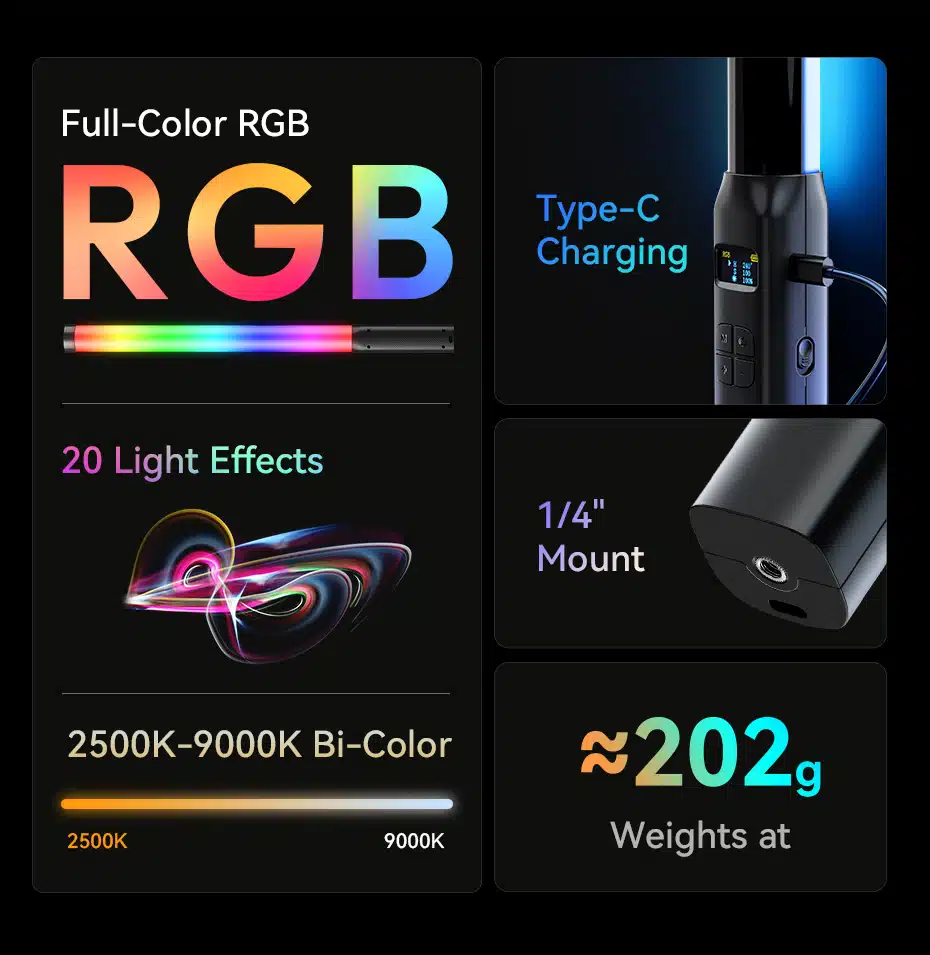 ULANZI VL119 10W RGB Light Wand: 360° RGB