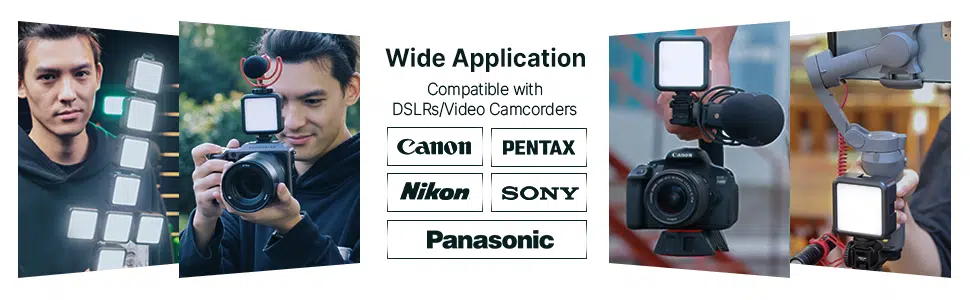 Wide Compatibility: Works with DSLR cameras, mirrorless cameras, camcorders, smartphones (with cold shoe adapter), gimbals (DJI Osmo Mobile, Zhiyun Smooth), action cameras (GoPro), and more.