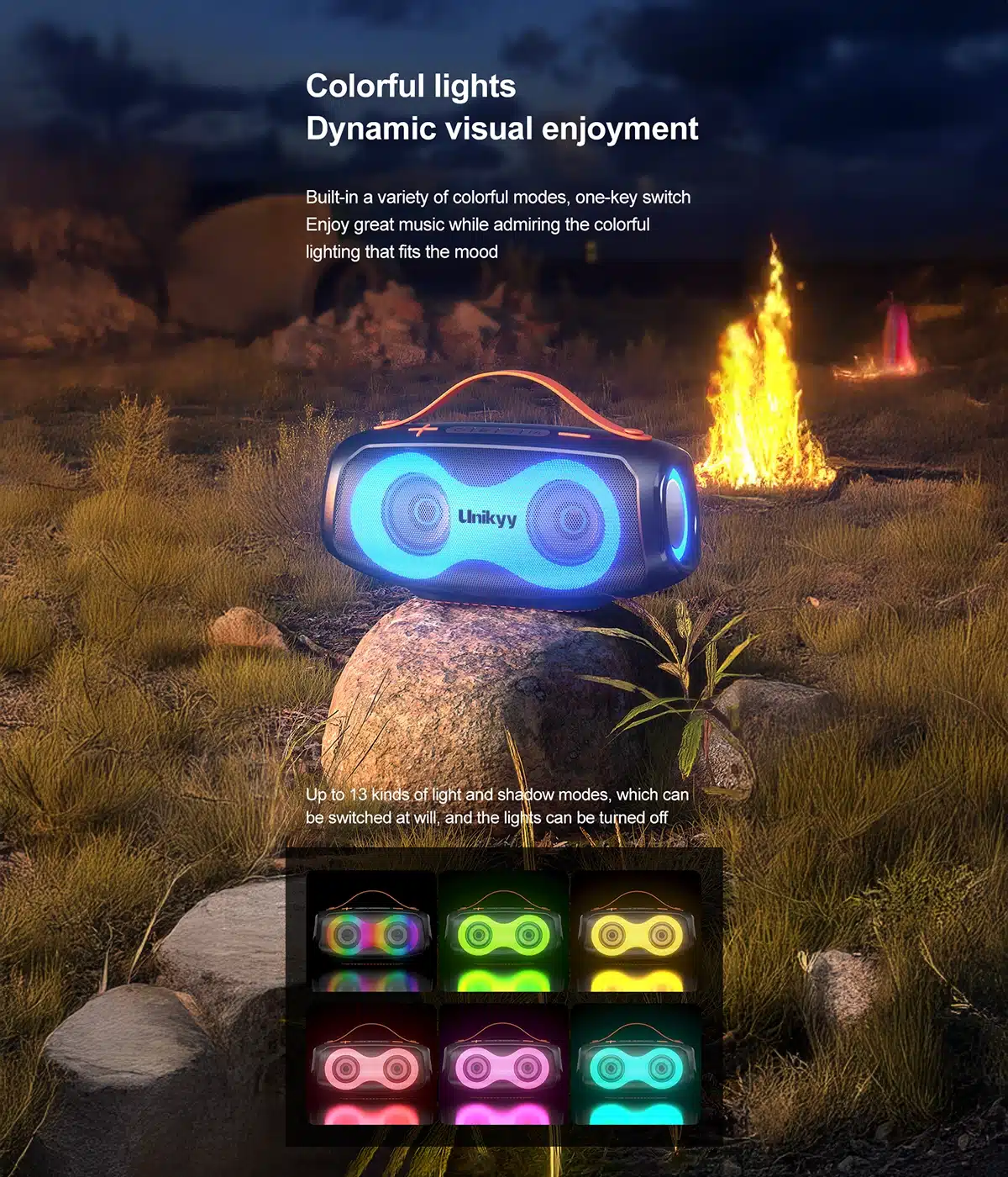Bluetooth 5.4 | IPX4 Waterproof | TWS Pairing | Rainbow Lighting | Multi-Mode Playback