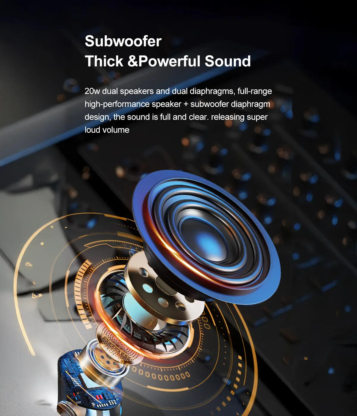 Multi-Mode Playback: Supports Bluetooth, TF card, USB flash drive, AUX input, and TWS mode for ultimate flexibility.