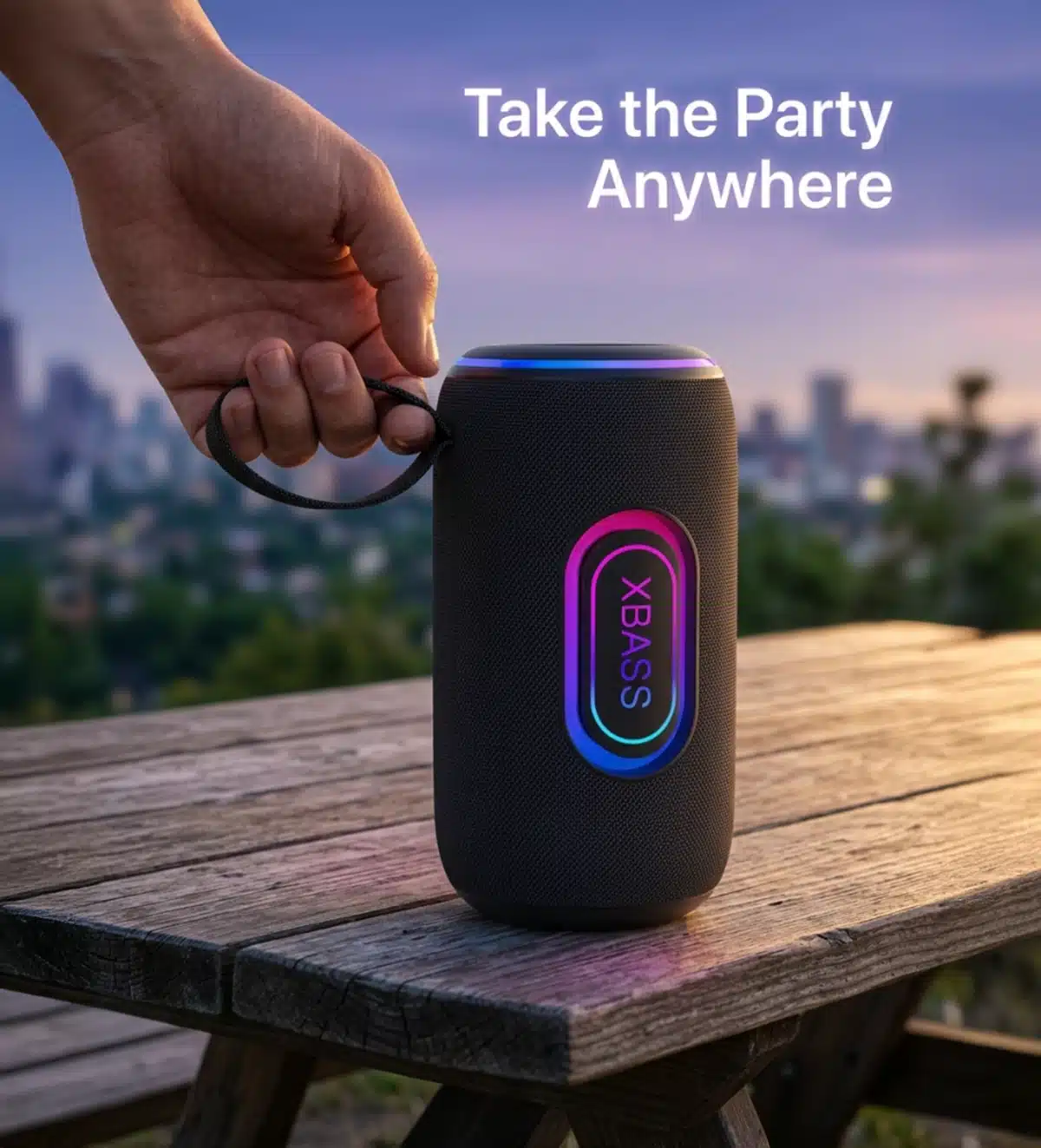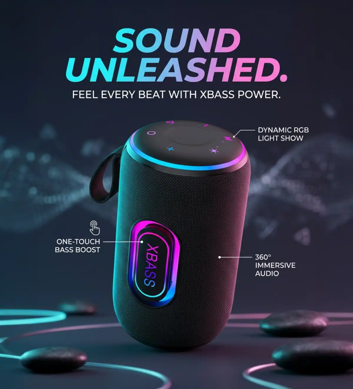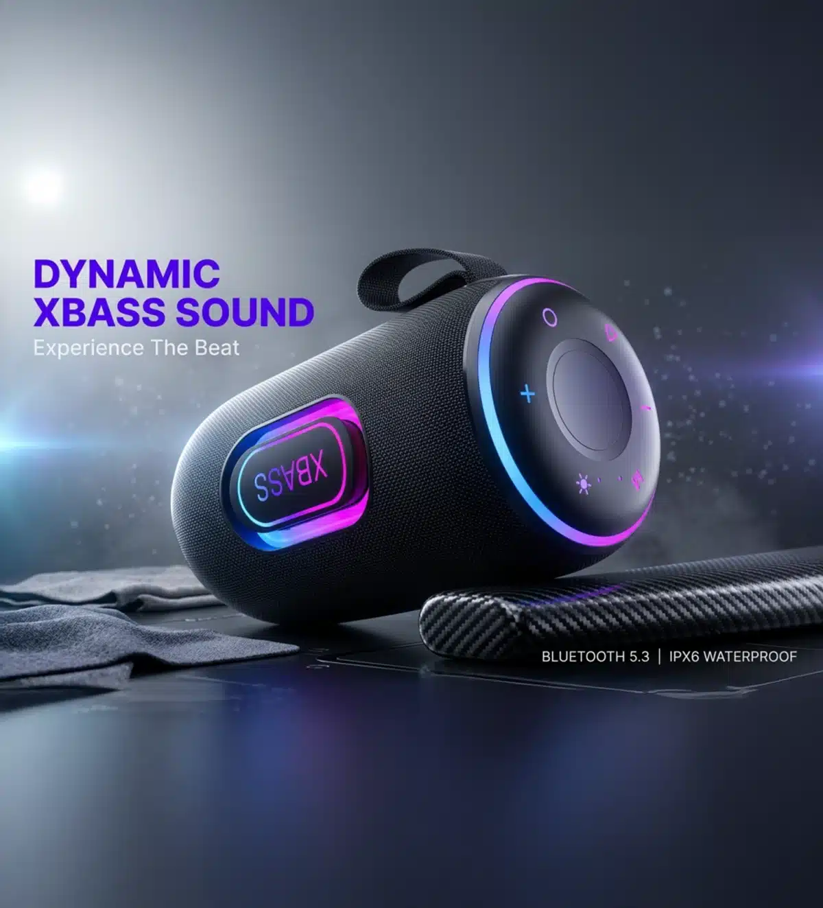 Bluetooth 5.3 | IPX6 Waterproof | XBASS Sound Effect | Ring-Shaped RGB Lighting | Multi-Mode Playback