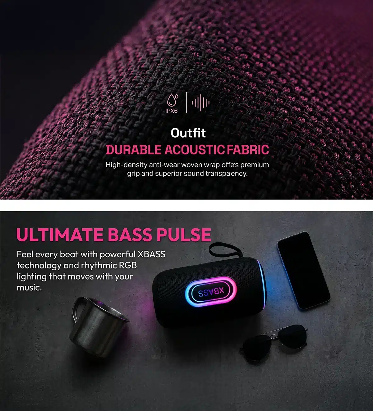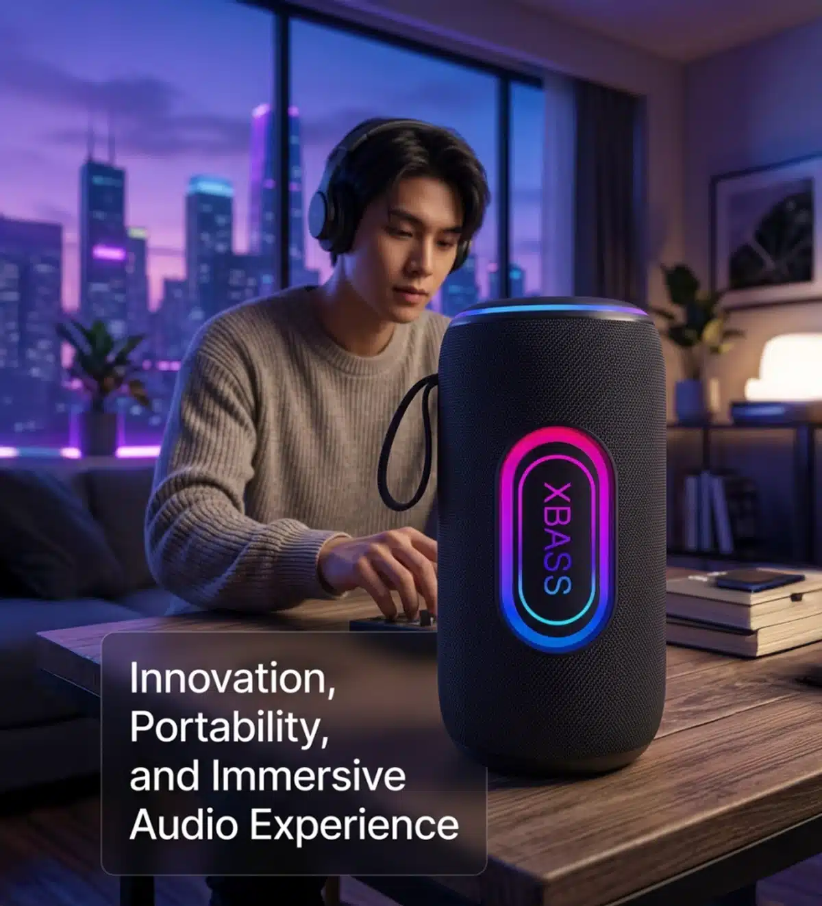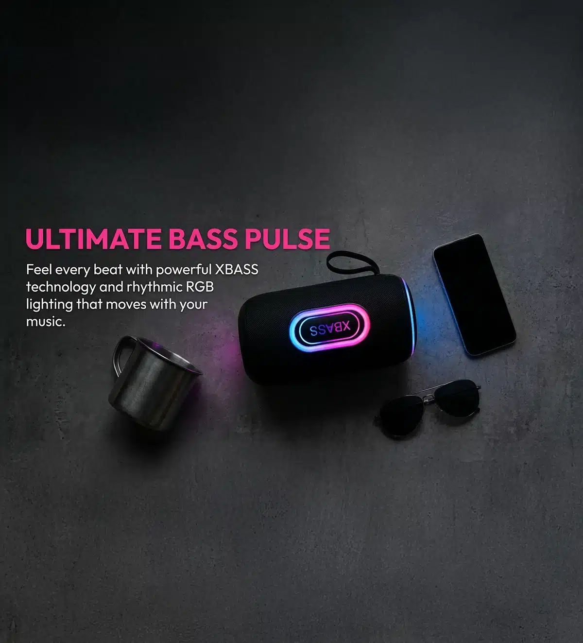 Bluetooth 5.3 | IPX6 Waterproof | XBASS Sound Effect | Ring-Shaped RGB Lighting | Multi-Mode Playback