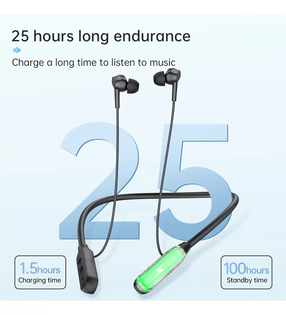 Skin-Friendly Silicone Comfort: Ultra-soft silicone neckband combined with lightweight, flexible TPE wires for a tangle-free, all-day comfortable fit.