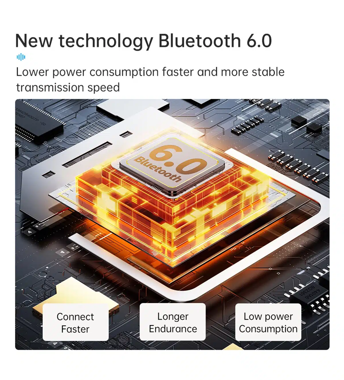 Bluetooth V6.0 Technology: Latest generation Bluetooth chipset for instant pairing, a stable connection, and low power consumption.